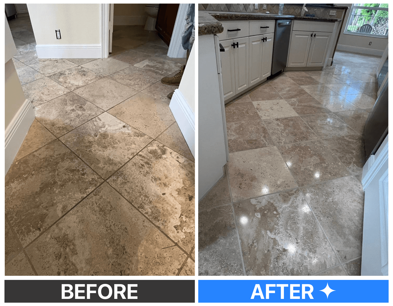 Best service in Florida! We reached out to Sterling Cleaning to have our Terrazzo floors cleaned. They were rust stained, and had a lot of blemishes. Oscar came out the next day and gave us a fair estimate, explaining cleaning wasn't going to be sufficient and we needed a restoration process. Honing, buffing and sealing. They started the following morning and did an amazing job. We opted for a slightly less polished finish as the home is older and didn't want to contrast the older aesthetic of the home. The final result is incredible!"