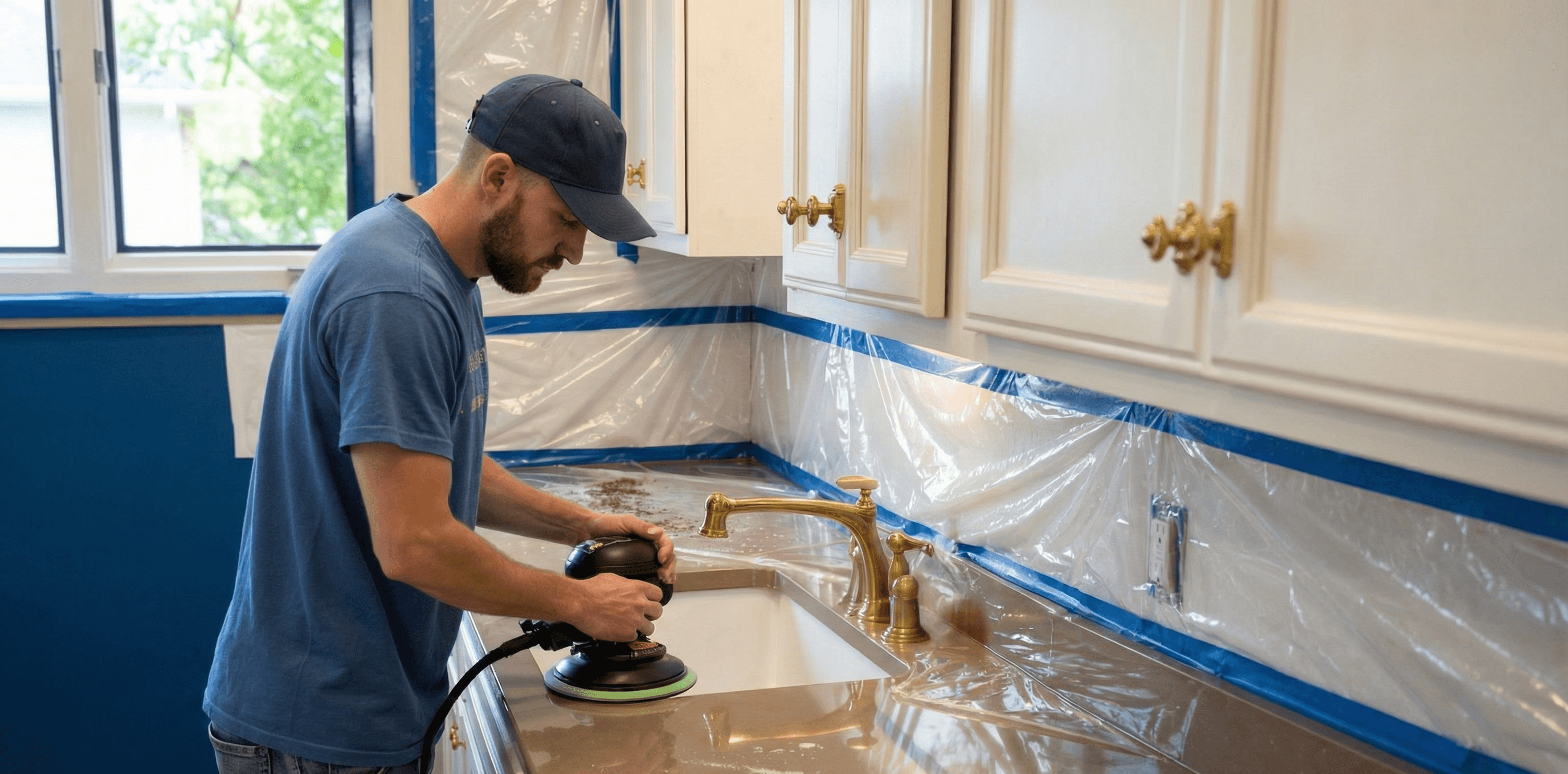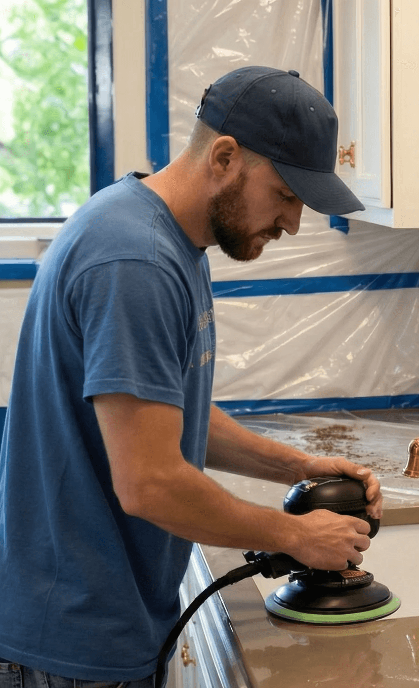 and marble surfaces with precision, avoiding the chaos of renovations or unnecessary