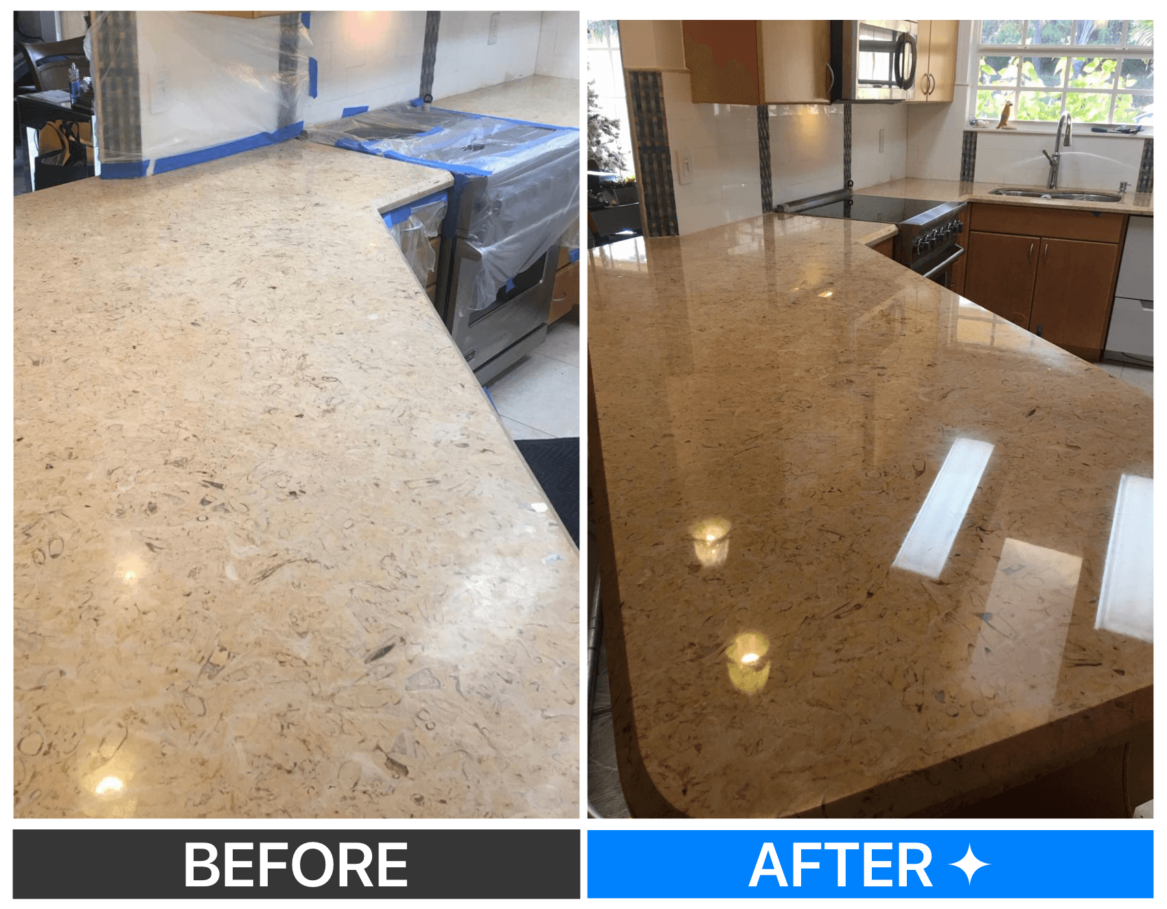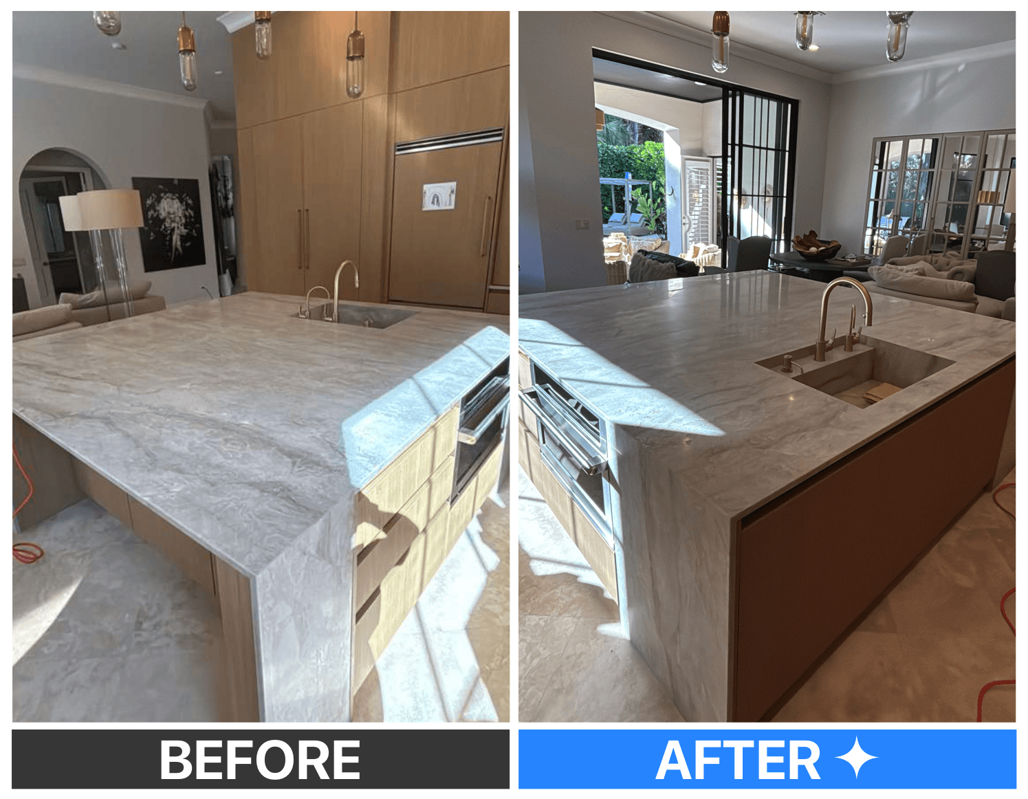 "Sterling did a great job! They made my dull marble counter tops shine like glass Beautiful job!"